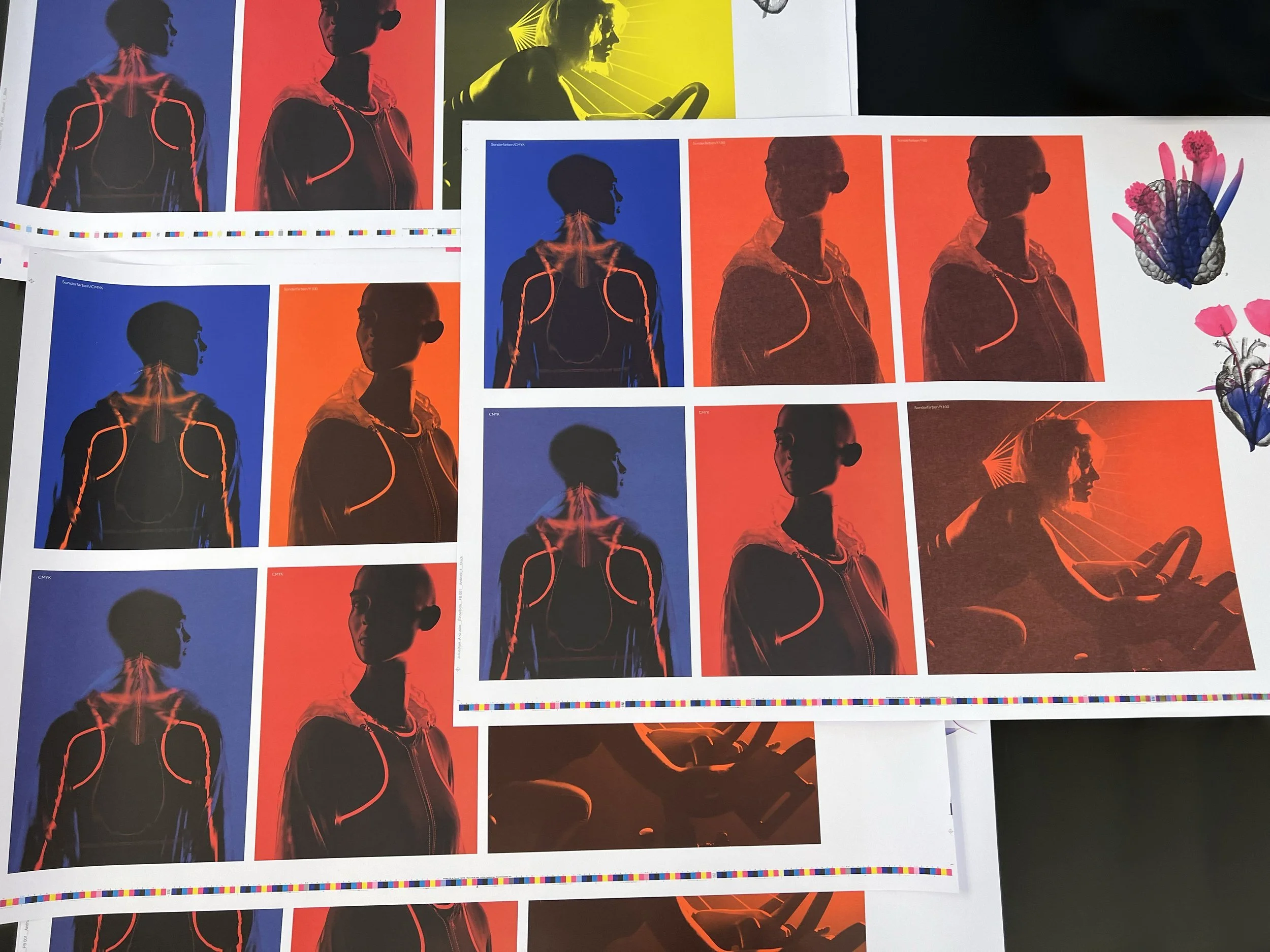 Gemeinsam mit der Qualitätsdruckerei Medienwerkstatt AG näherten wir uns etappenweise dem anspruchsvollen Ergebnis an. Es folgten diverse Andrucke und Proofs sowie viele Drucktests und Druckgänge, um das gewünschte Resultat bezüglich Farbgebung, Kontrast, Leuchtkraft, Druckbild, Spezialeffekte zu erzielen. Zudem wurde eine sehr sorgfältige Druckabstimmung durchgeführt.