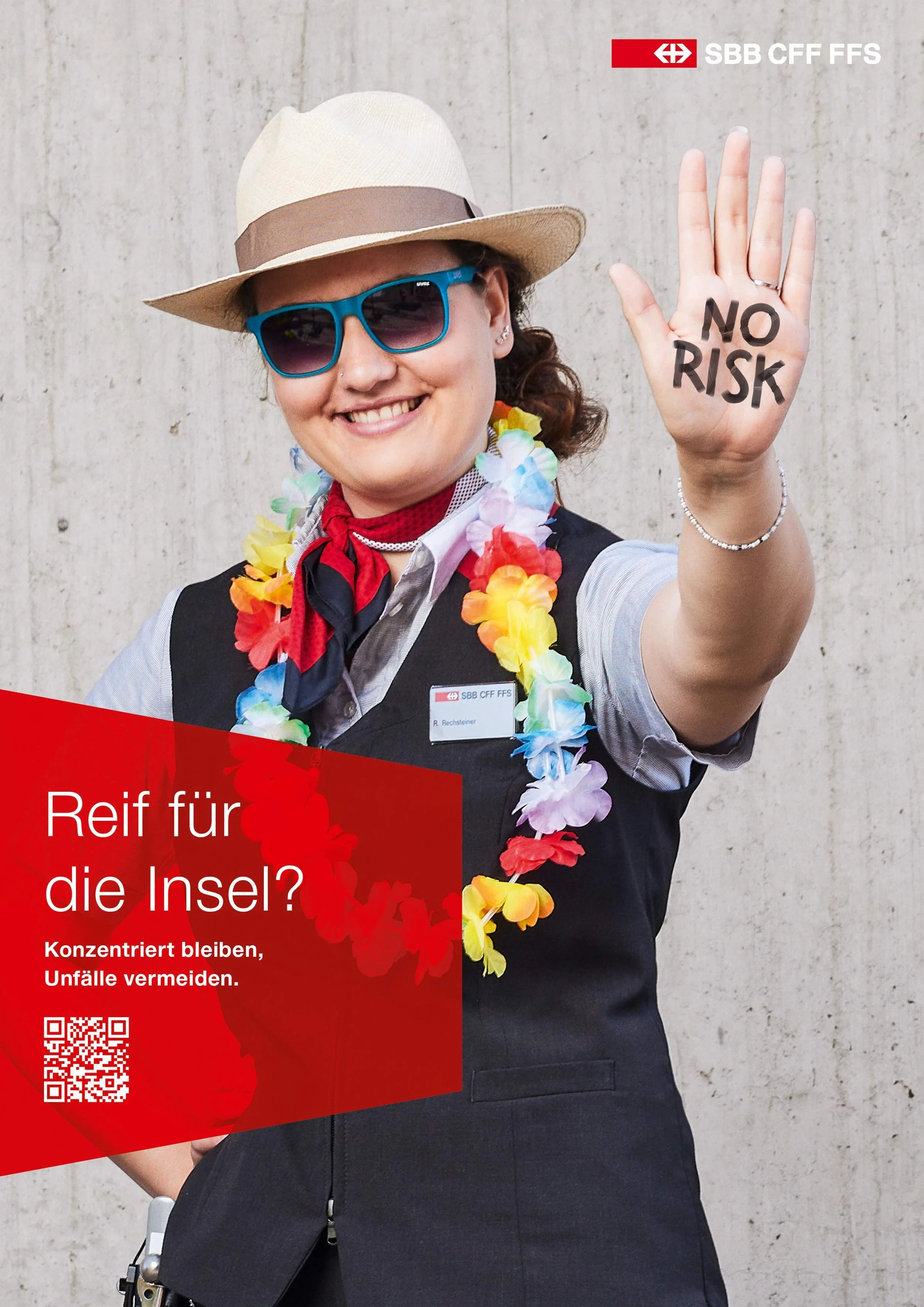 Hohe Temperaturen können die Konzentration beeinträchtigen. Und die Vorfreude auf die Sommerferien könnten die Gedanken schon mal an den Sandstrand schweifen lassen. Mit dieser Kampagne ruft die SBB ihre Mitarbeitenden dazu auf, während des Sommers und der Ferienzeit genauso aufmerksam, konzentriert und vorausschauend wie immer zu handeln.